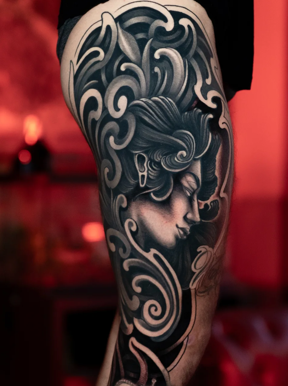 Isaac Henríquez es un artista del tatuaje con base en Antigua Guatemala, reconocido por su estilo distintivo en blackwork, freehand y esculturas corporales. Con más de cinco años de trayectoria, su trabajo se caracteriza por la fluidez del trazo, el contraste profundo y una composición orgánica que transforma cada idea en una obra de arte sobre la piel.
